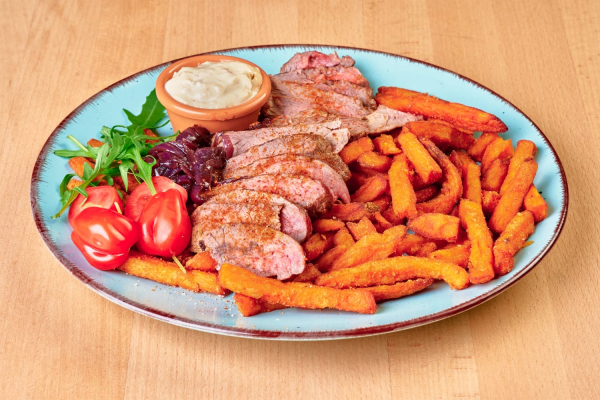 Hovädzí flank steak s batátovými hranolkami